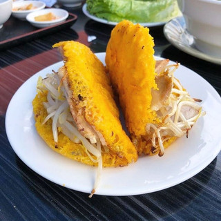 Bánh Khoái looks similar to Bánh Xèo so it's easy to assume they are the same. Bánh Khoái is a distinct Huế dish. It's usually a little smaller and crispier (stays crispy too!) as well as thicker than Bánh Xèo. Plus it comes with a special sauce that makes all of the difference. The wildly popular Southern dish, Bánh Xèo is usually eaten with fish sauce.